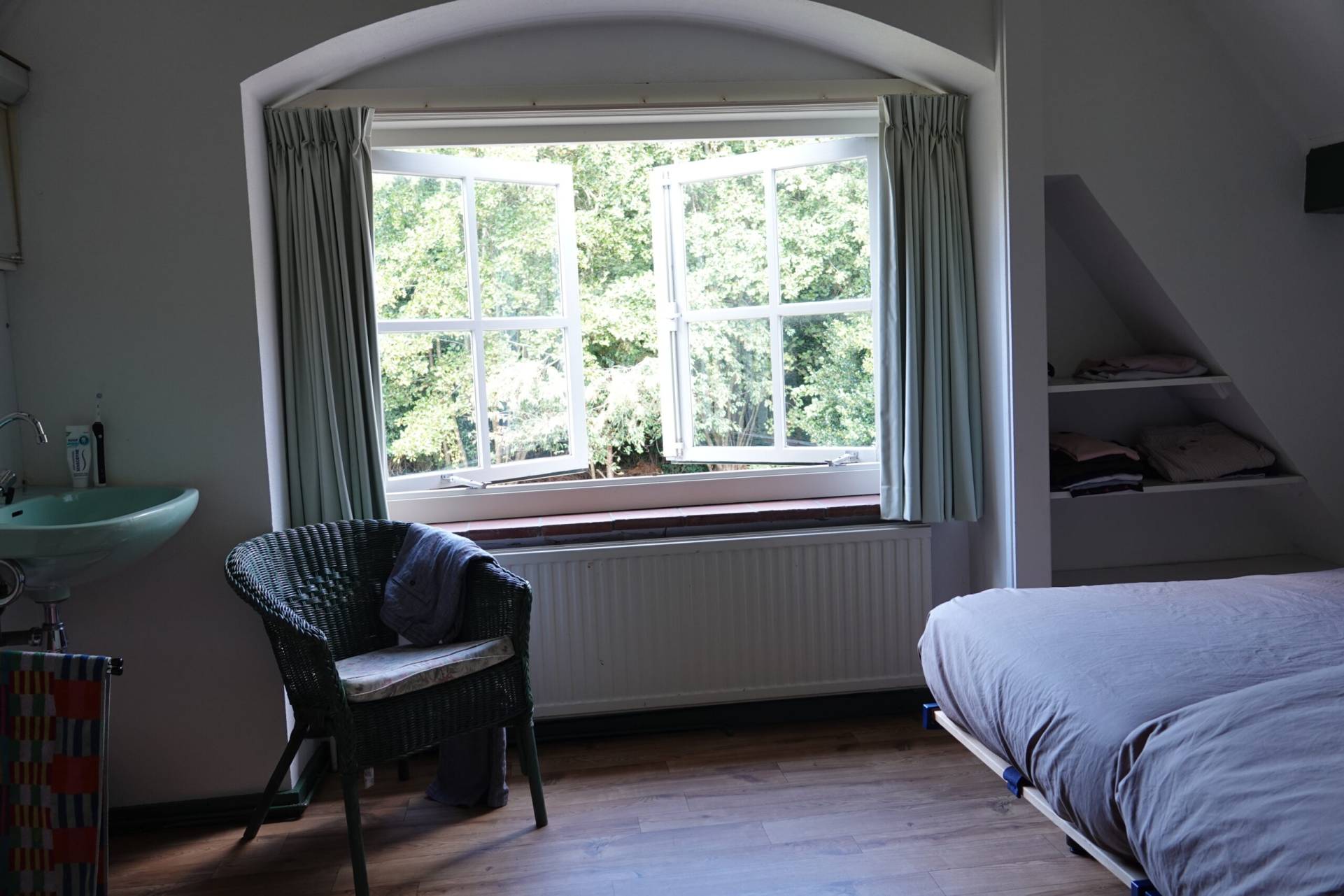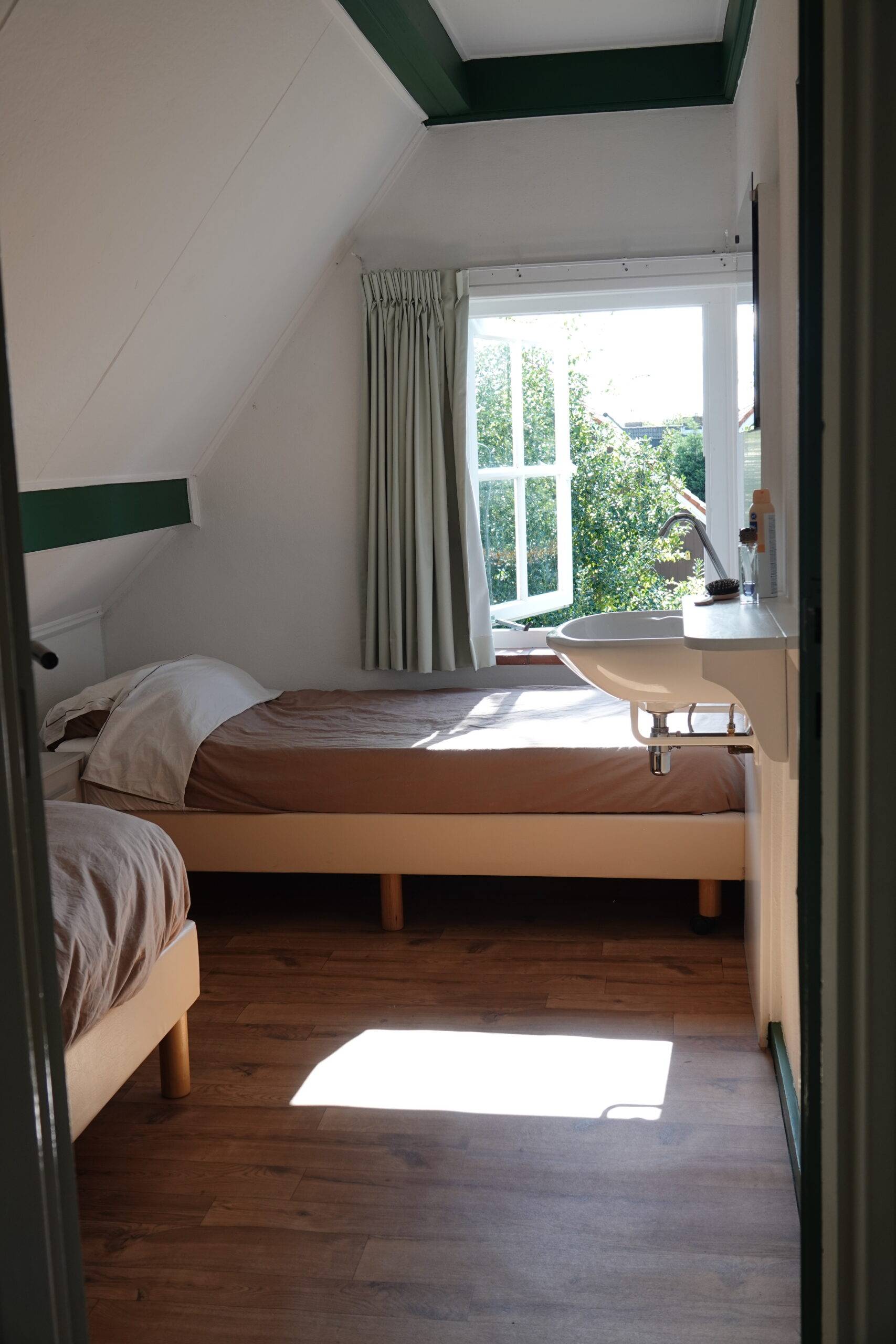 Stap binnen in een huisje dat sfeer en comfort moeiteloos combineert. De authentieke details geven het huis karakter, terwijl moderne voorzieningen zorgen voor een ontspannen verblijf. Boven vind je drie slaapkamers: een ruime kamer met een comfortabel tweepersoonsbed en twee knusse kamers met elk twee eenpersoonsbedden. Alle slaapkamers beschikken over een eigen wastafel, wel zo praktisch voor gezinnen of als je met vrienden reist.